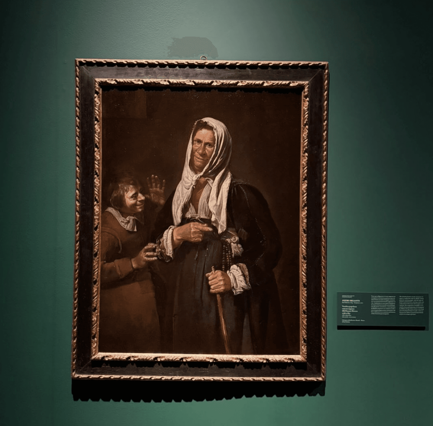 A masterpiece on display is Elderly Peasant Woman with a Boy, a long-thought-lost painting acquired in 2024 by Luciano Sorlini for the MarteS – Museo d’Arte Sorlini. The work, depicting an elderly woman and a young boy in a humble domestic setting, boasts a prestigious provenance: in the nineteenth century, it belonged to the Casa Torres collection in Madrid, a presence confirmed by a black-and-white photograph preserved in the collection’s photographic inventory, where it was attributed to Diego Velázquez before being firmly re-established as an autograph masterpiece by Bellotti. The same photograph that, in the 1940s, sparked the search for the lost painting is now displayed alongside the work itself — a poignant reminder of its long and fascinating rediscovery.
